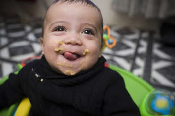 Si votre bébé commence à être grincheux, qu'il tourne sa tête, s’il serre ses lèvres pour fermer sa bouche, s’il recrache la nourriture ou s’il jette la nourriture autour de lui, c'est un signe qu’il n’a plus faim. Cessez de le nourrir et ne le forcez pas à continuer de manger.