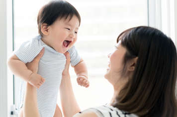 Their neck, shoulder, and chest muscles continue to gain in strength. Their back has straightened out and the muscle tone in their torso is firm. This allows them to support their upper body and sit for a few seconds without falling over. They are now able to roll over completely - from tummy to back and then from their back to their tummy. Now they are officially mobile.