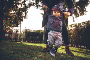 This month, your baby may take their first step, if they have not done so already. they will keep their legs spread far apart when they do this, to help improve their stability. Your baby will have to concentrate very hard when they take their first steps. For the next few weeks, they will often look at their feet when trying to walk, to keep track of where they are in relation to the objects around them.